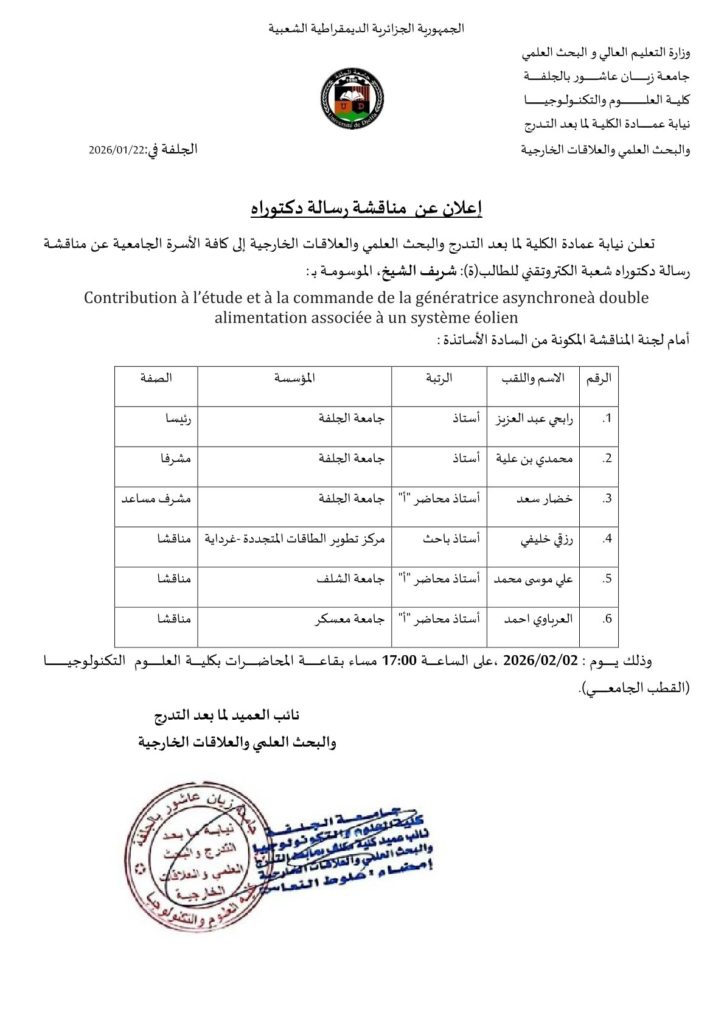 إعلان مناقشة رسالة دكتوراه للطالب الشريف الشيخ