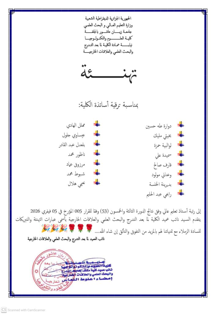 تهنئة أساتذة الكلية بمناسبة الترقية
